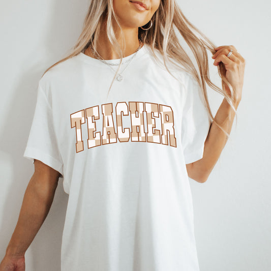 Neutral Checkered Teacher Tee (on comfort colors!!)