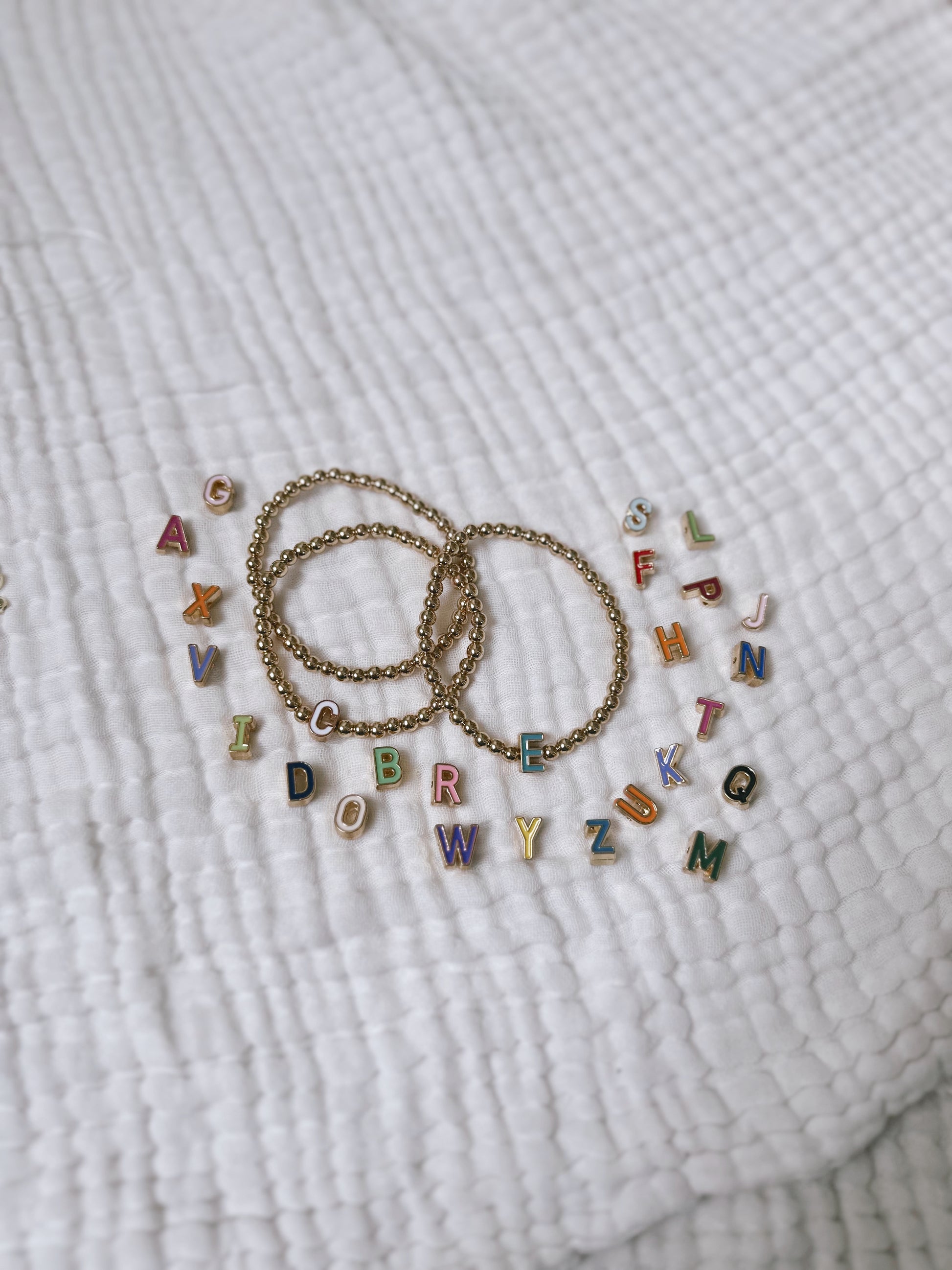 nylon cording, seed beads, letter beads, lobster clasp & key ring, uv resin seal
