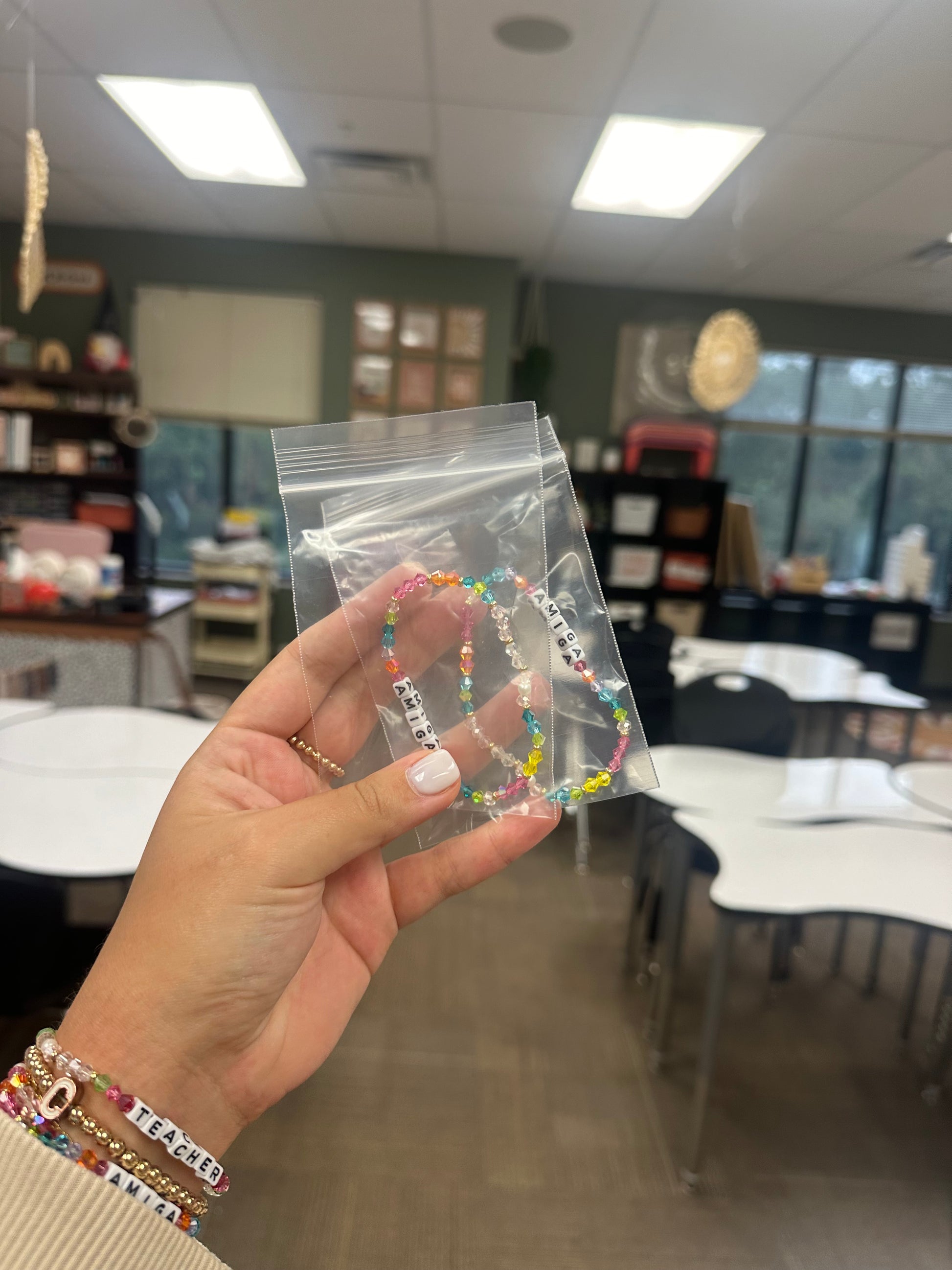 All accessory items are not meant to get wet. Wearing jewelry in the shower, swimming pool, ocean, etc. is not recommended as this can cause premature wear to beads and cording. Lanyards will now be setup with cording attached to lobster clasp instead of key ring. This will help your keys & badges go on more smoothly!