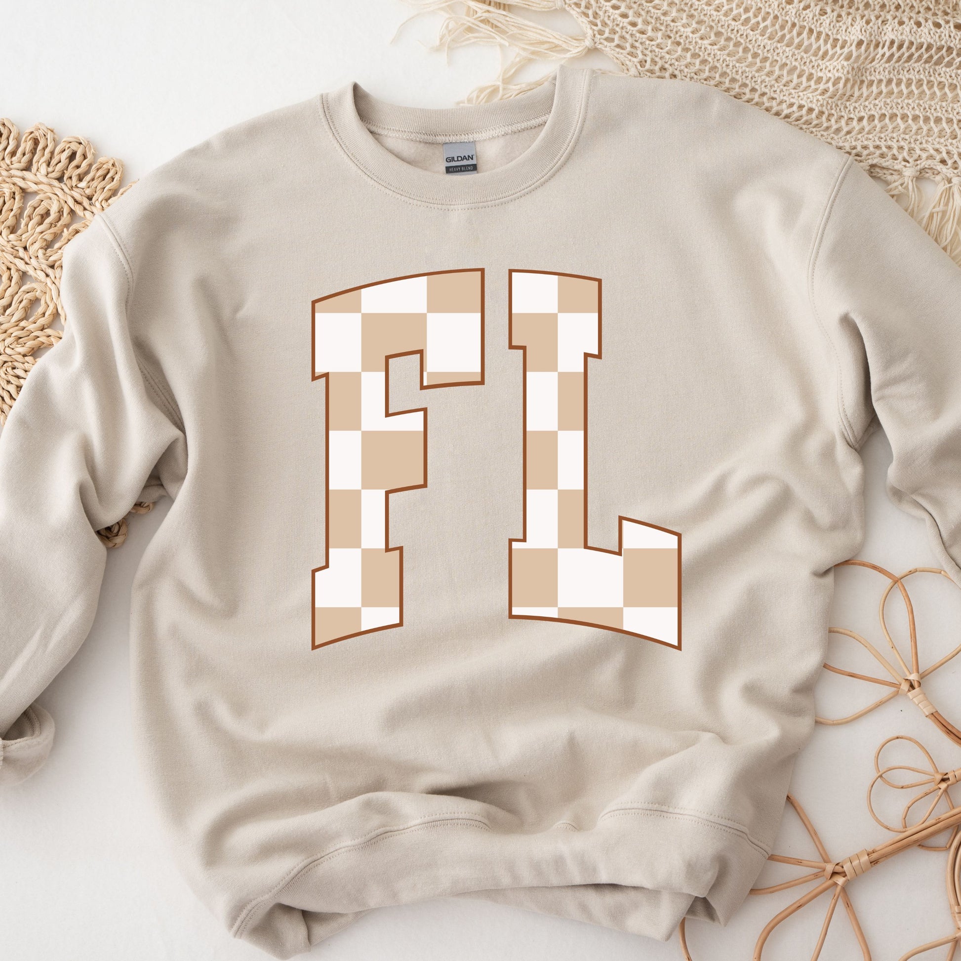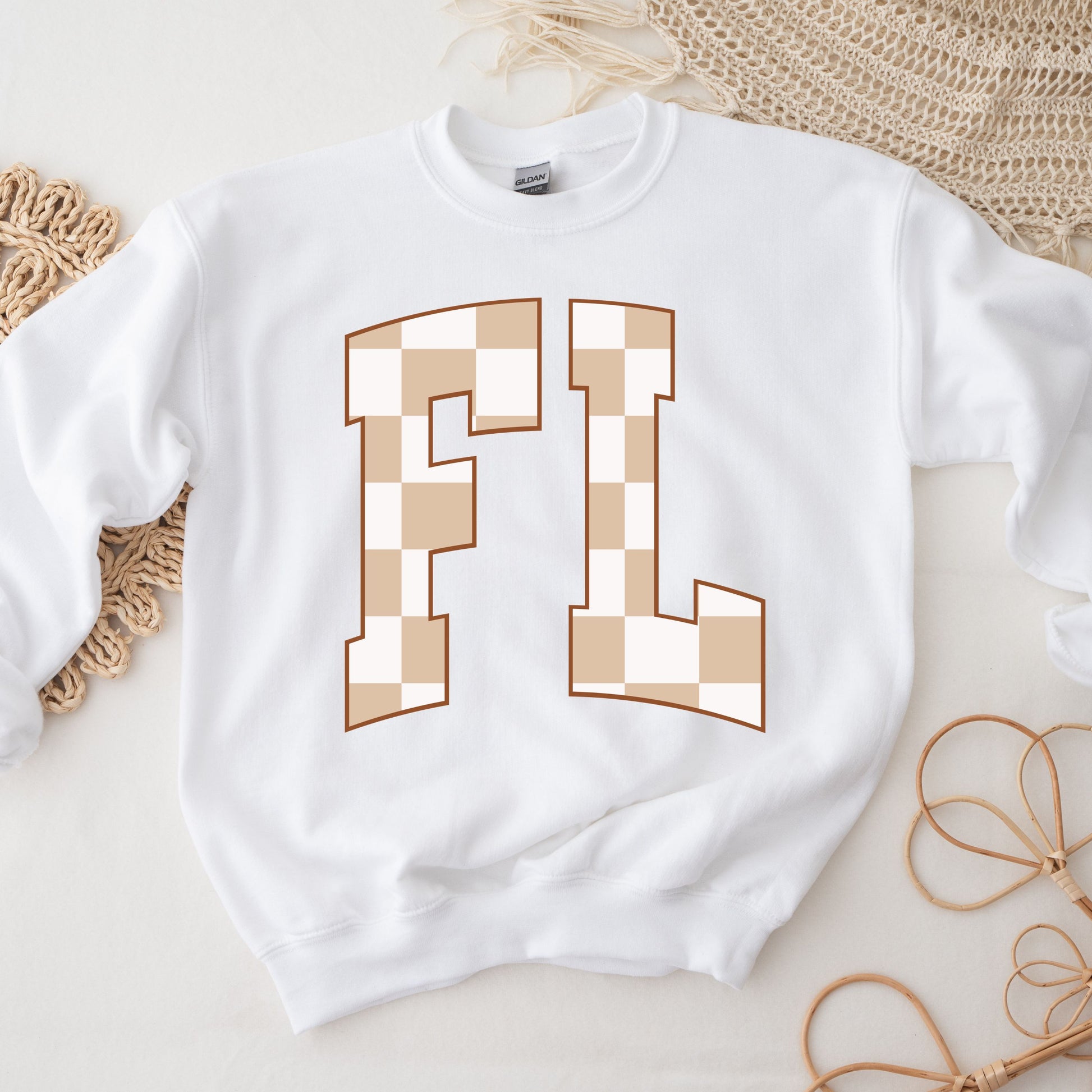 Checkerboard AND a jumbo FL vibe? I've seen similar designs in boutiques and I LOVE. Printed on Gildan Crew