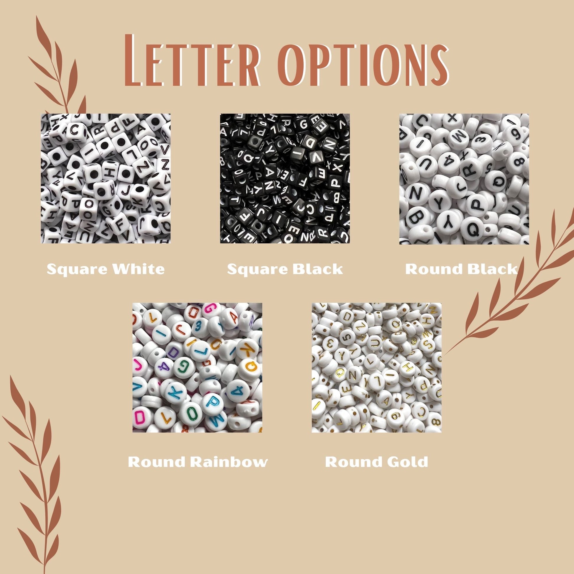 nylon cording, seed beads, letter beads, lobster clasp & key ring, uv resin seal