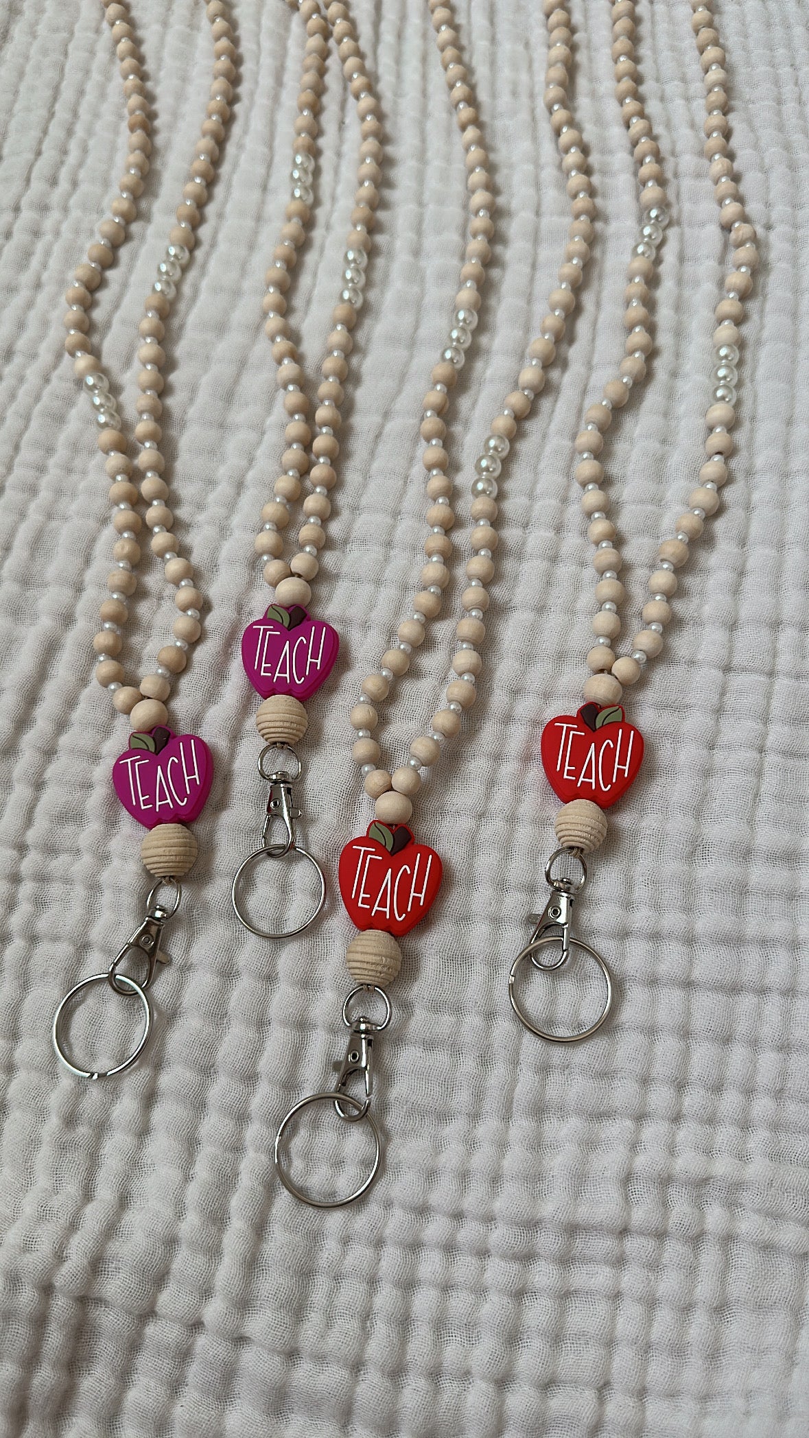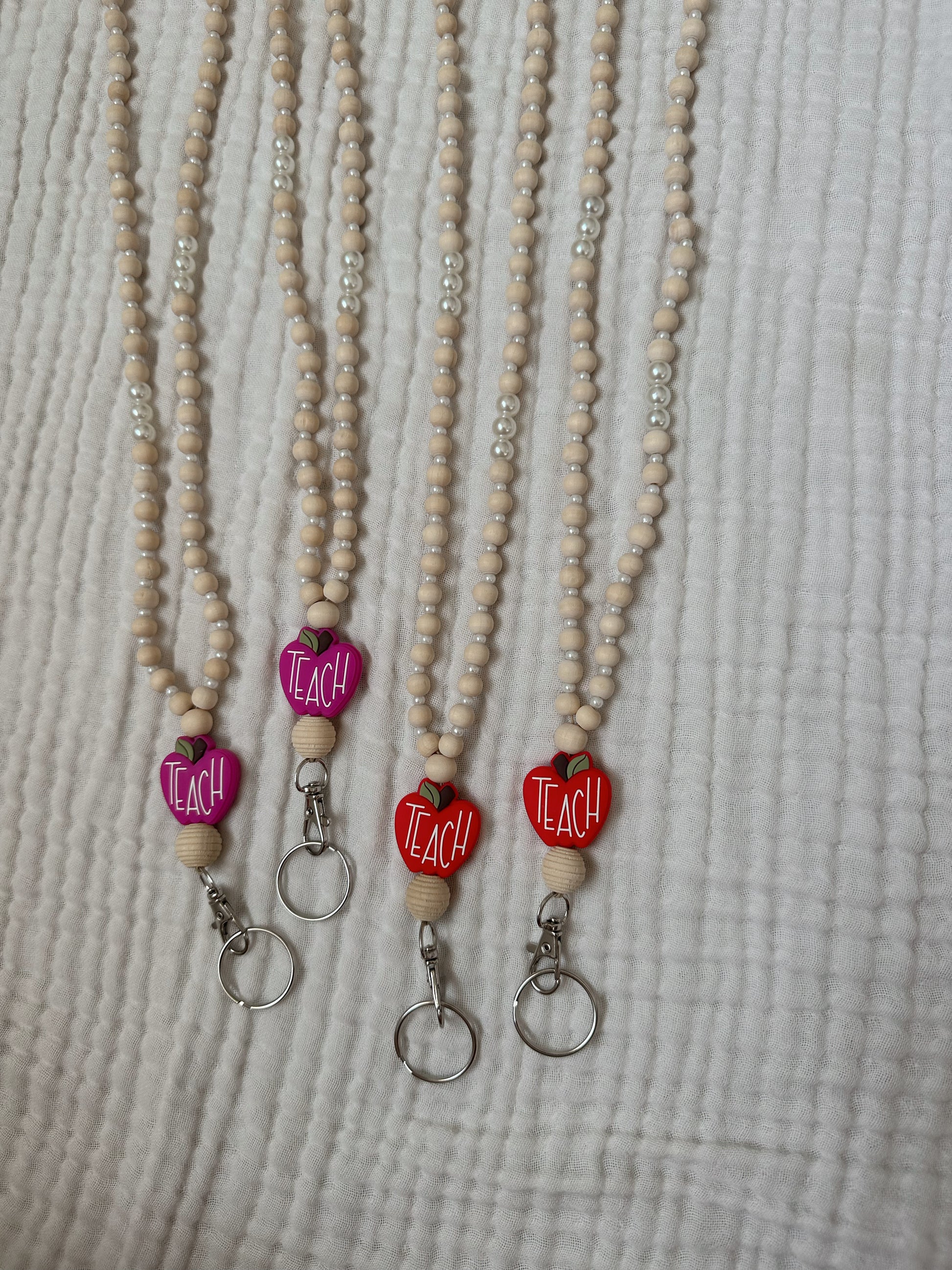 All accessory items are not meant to get wet. Wearing jewelry in the shower, swimming pool, ocean, etc. is not recommended as this can cause premature wear to beads and cording. Lanyards will now be setup with cording attached to lobster clasp instead of key ring. This will help your keys & badges go on more smoothly!