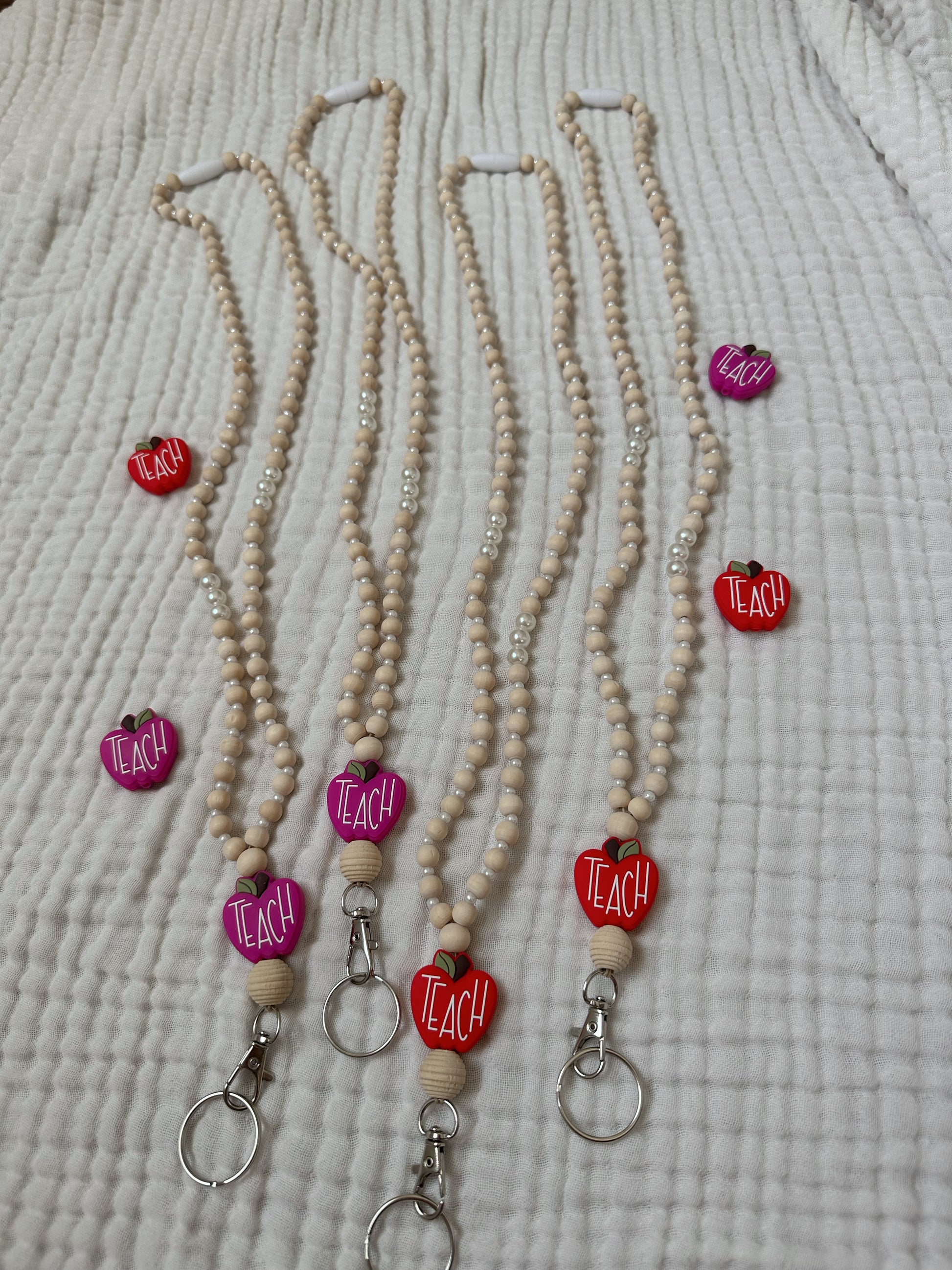 When I saw these apple beads, i couldn’t resist!! How cute are they!!! I wanted to keep it simple and classy with pearls, and of course neutral to go with any outfit! I love that the apple is the pop of color! I can’t wait to wear this in the classroom!!