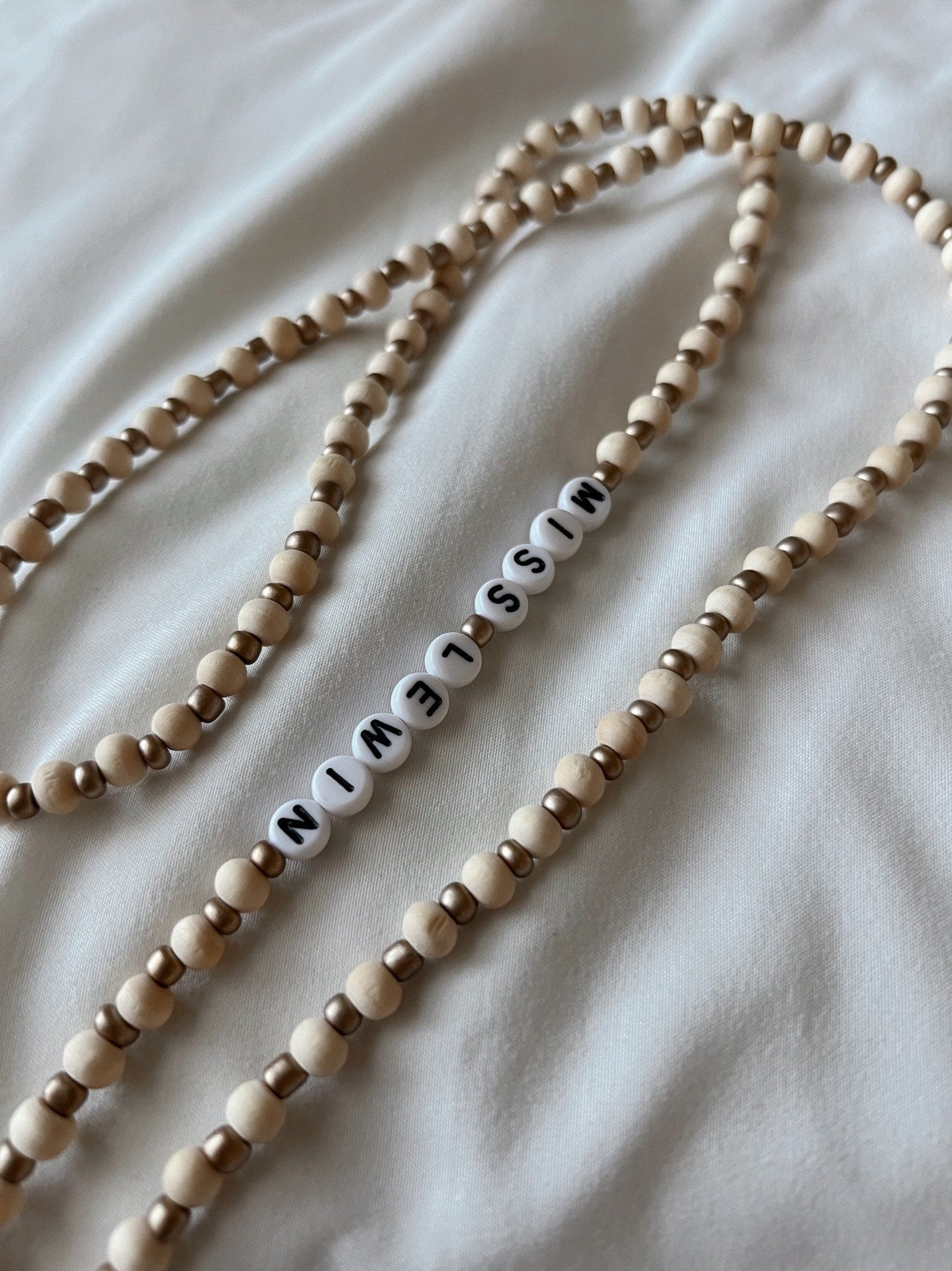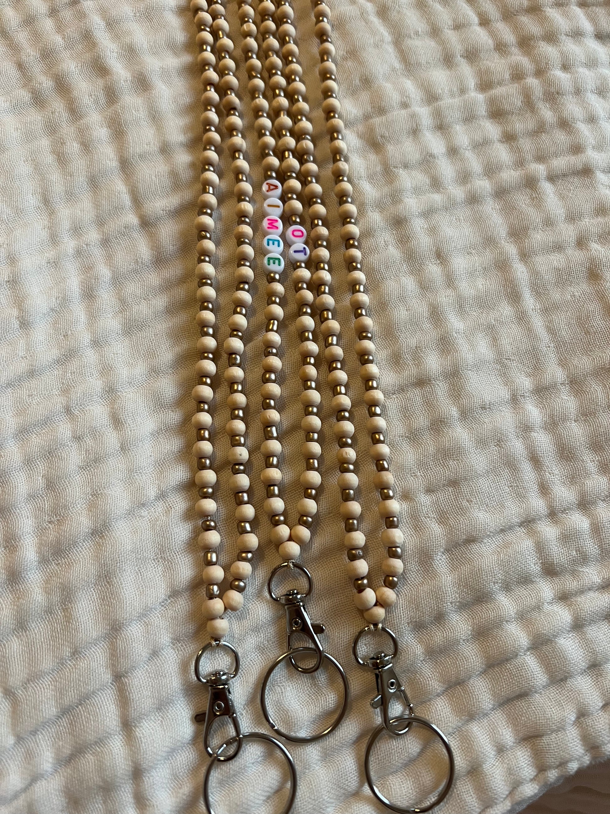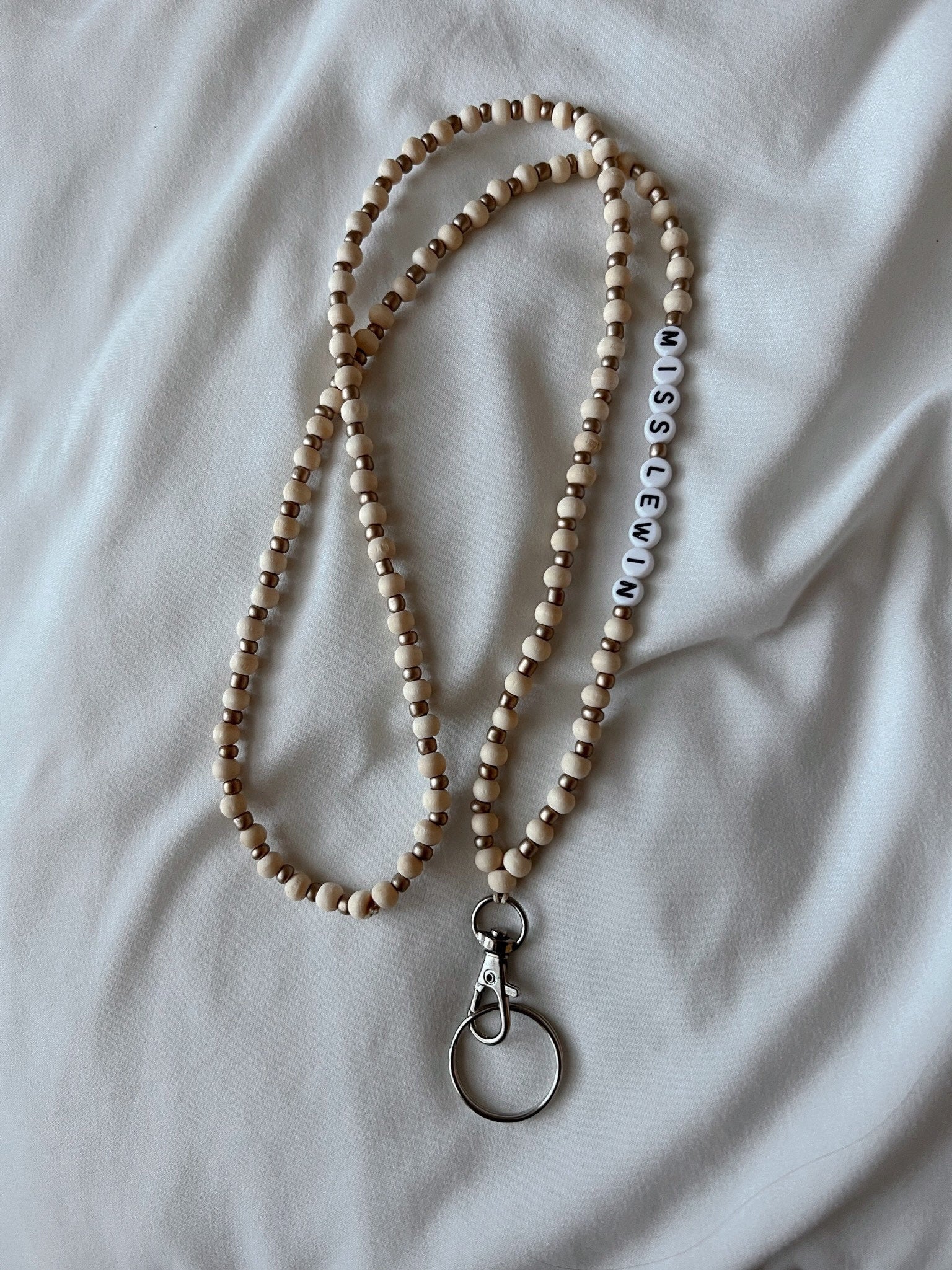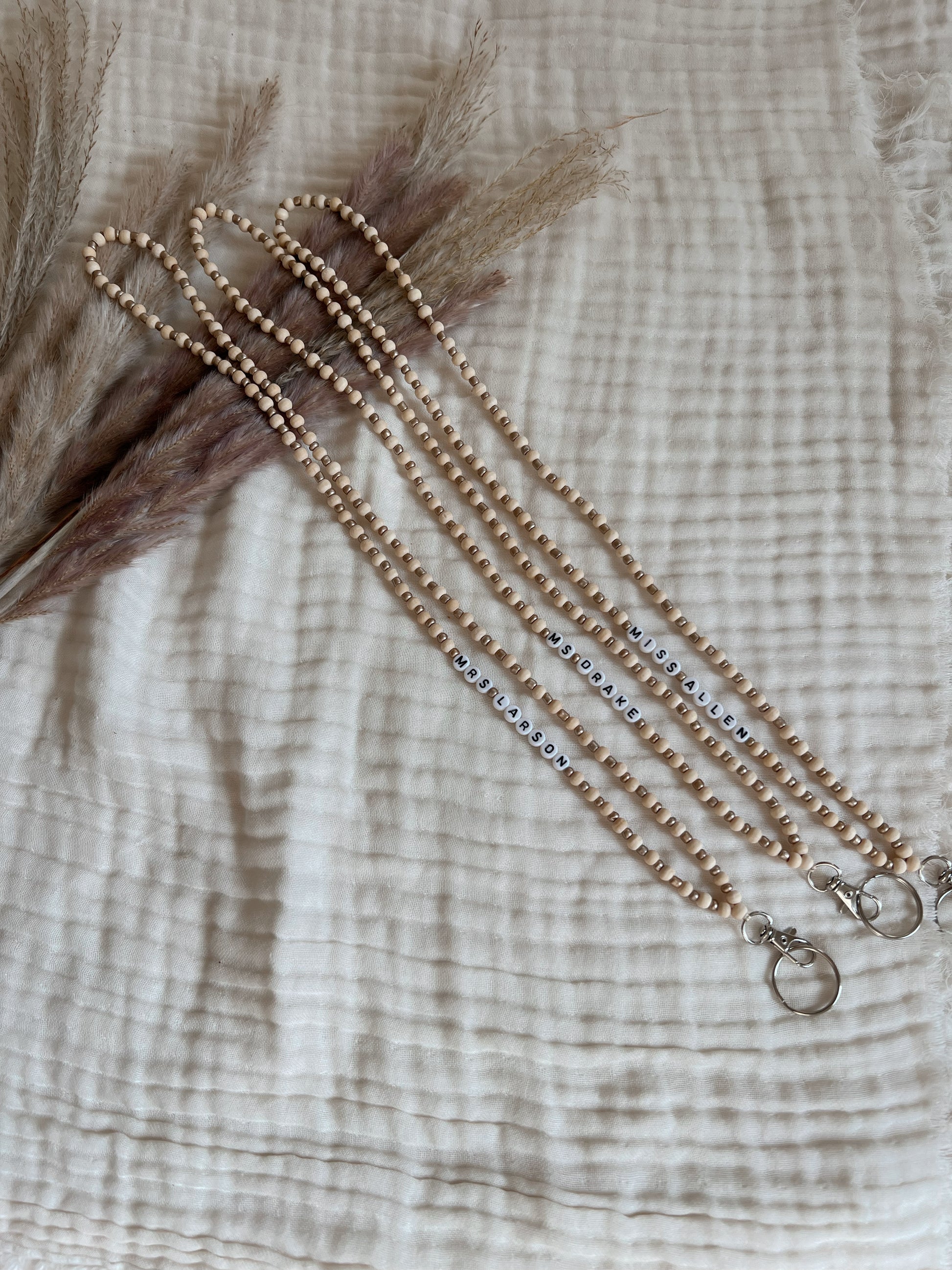 Personalized Small Wooden Beaded Lanyard for school, teaching, students, or any outing! The cutest way to hold your badge & keys. This lanyard is entirely customizable & personal to each individual!