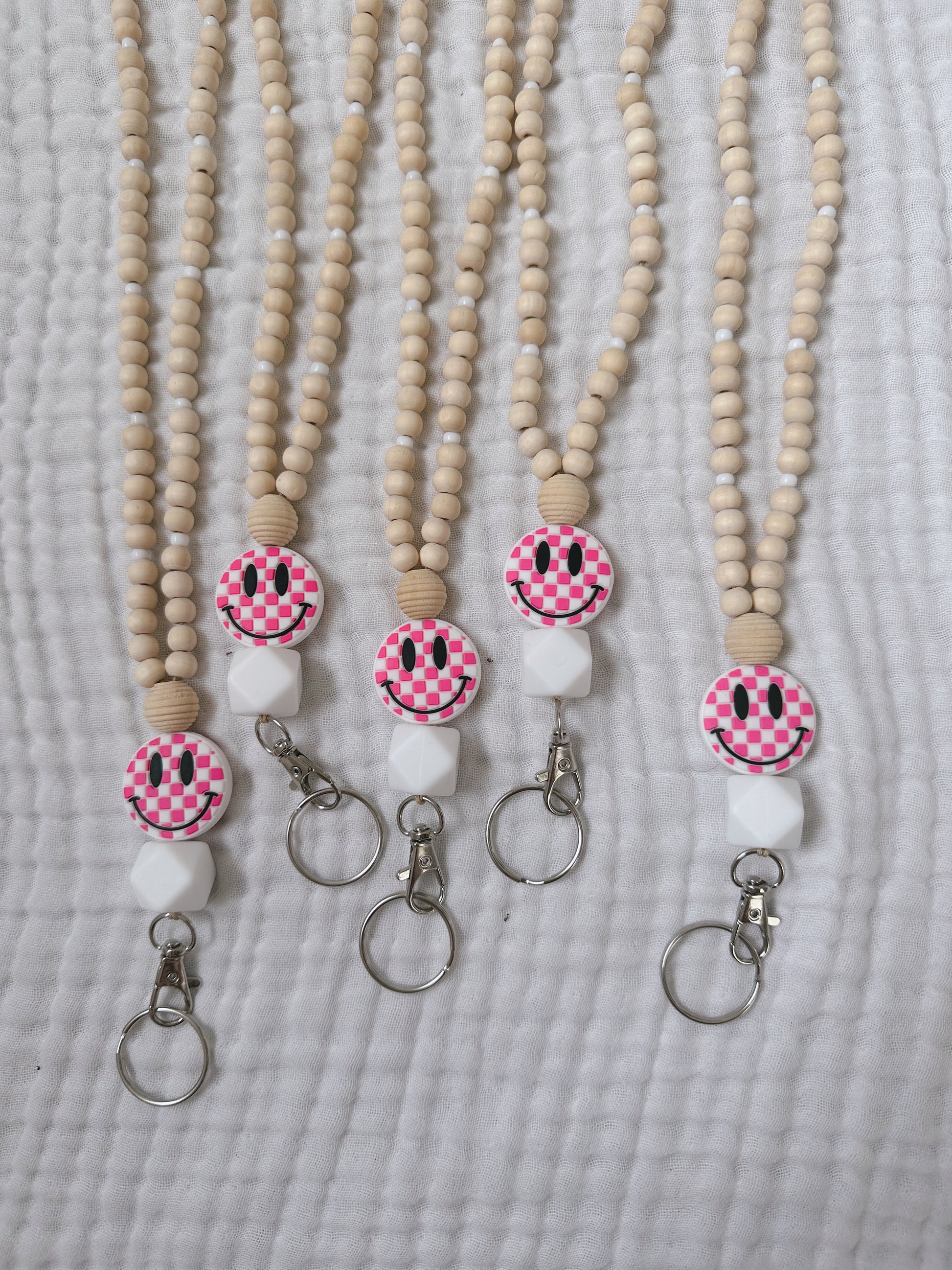 All accessory items are not meant to get wet. Wearing jewelry in the shower, swimming pool, ocean, etc. is not recommended as this can cause premature wear to beads and cording. Lanyards will now be setup with cording attached to lobster clasp instead of key ring. This will help your keys & badges go on more smoothly!