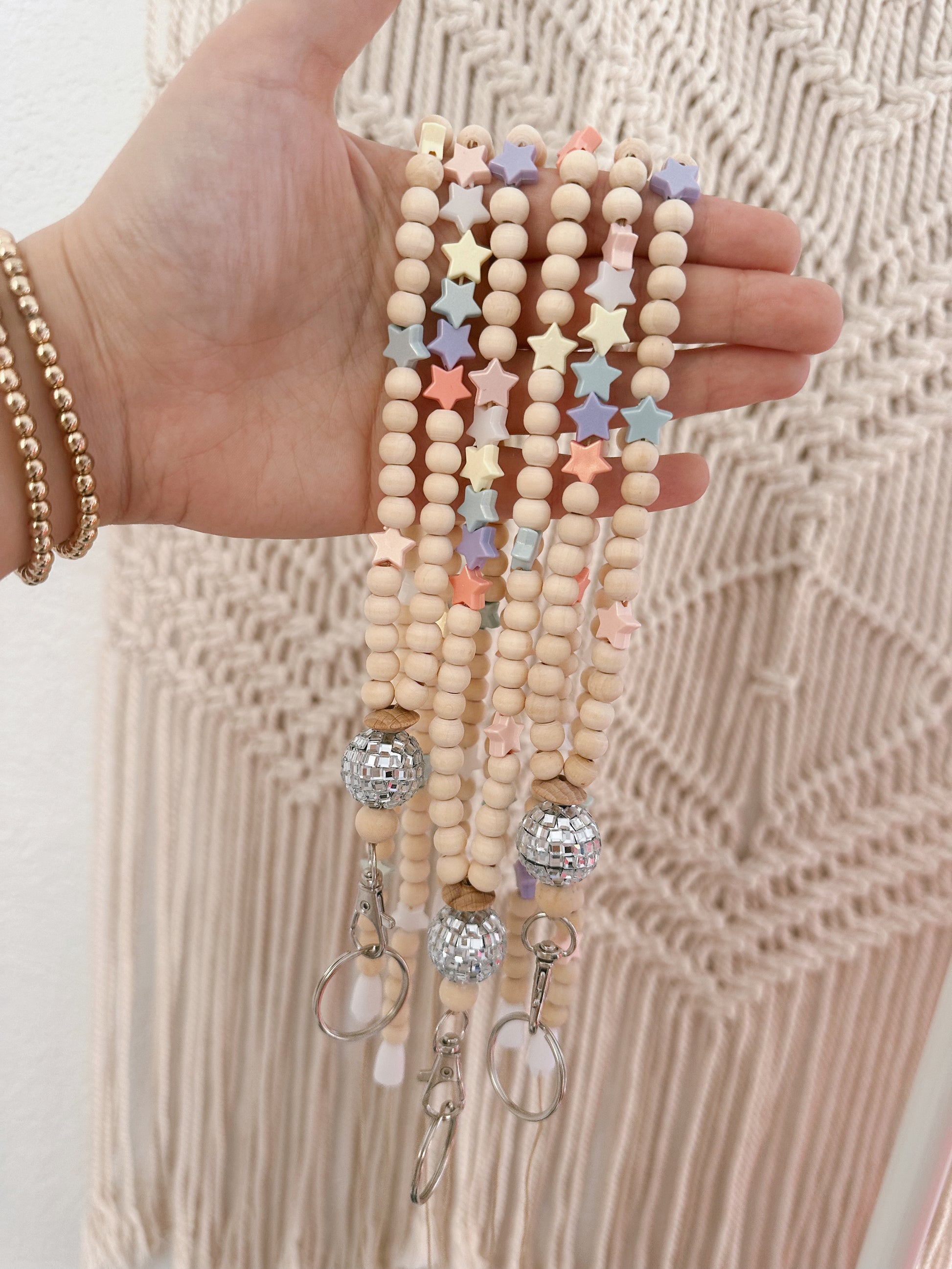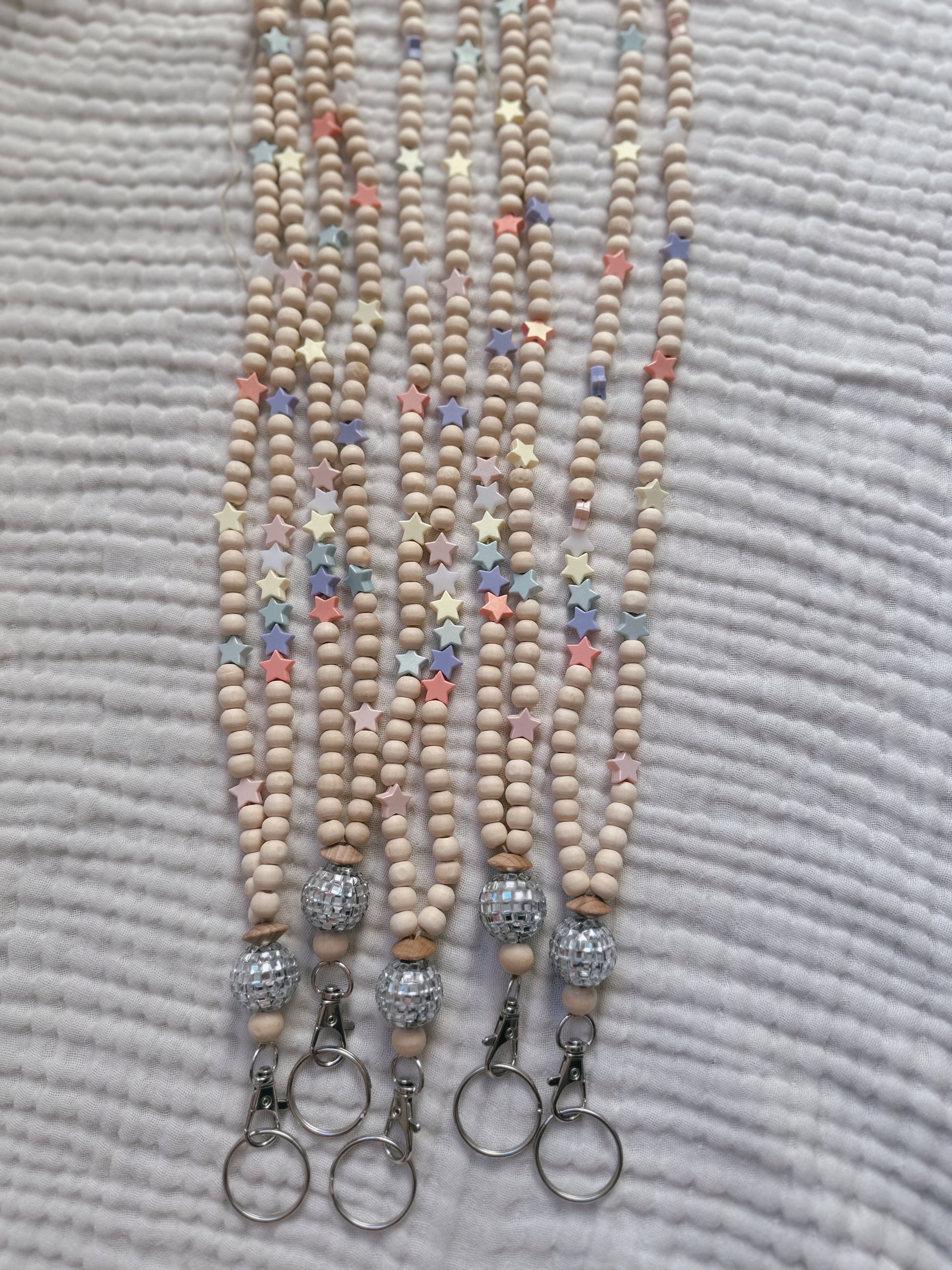 All accessory items are not meant to get wet. Wearing jewelry in the shower, swimming pool, ocean, etc. is not recommended as this can cause premature wear to beads and cording. Lanyards will now be setup with cording attached to lobster clasp instead of key ring. This will help your keys & badges go on more smoothly!