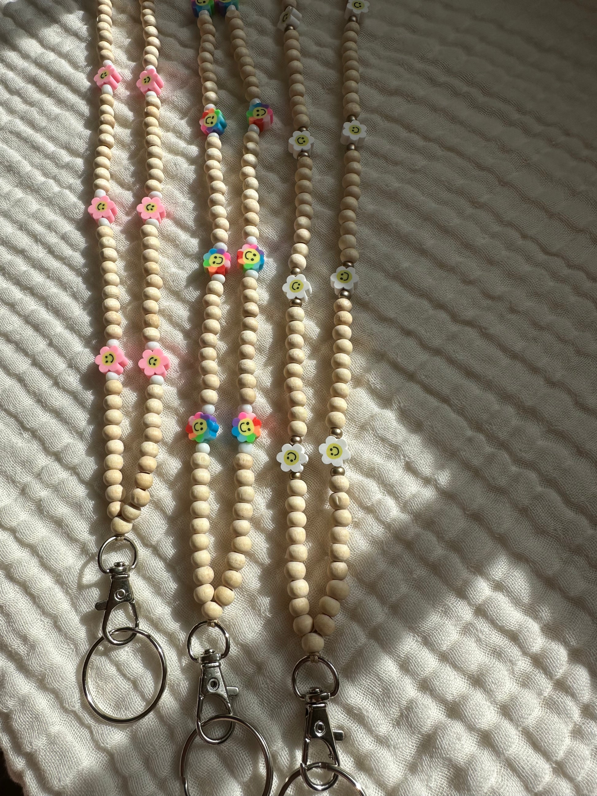 All accessory items are not meant to get wet. Wearing jewelry in the shower, swimming pool, ocean, etc. is not recommended as this can cause premature wear to beads and cording. Lanyards will now be setup with cording attached to lobster clasp instead of key ring. This will help your keys & badges go on more smoothly!