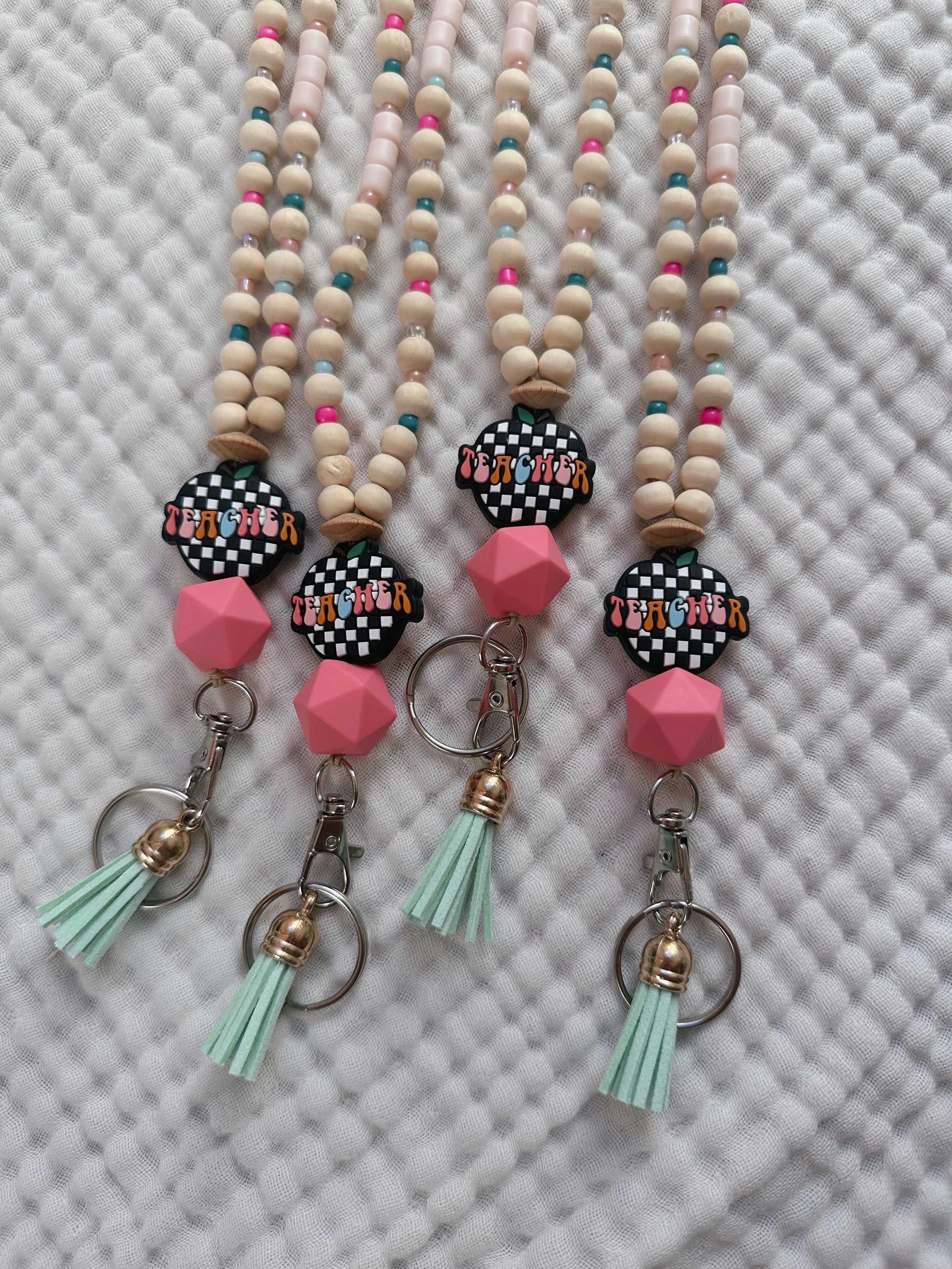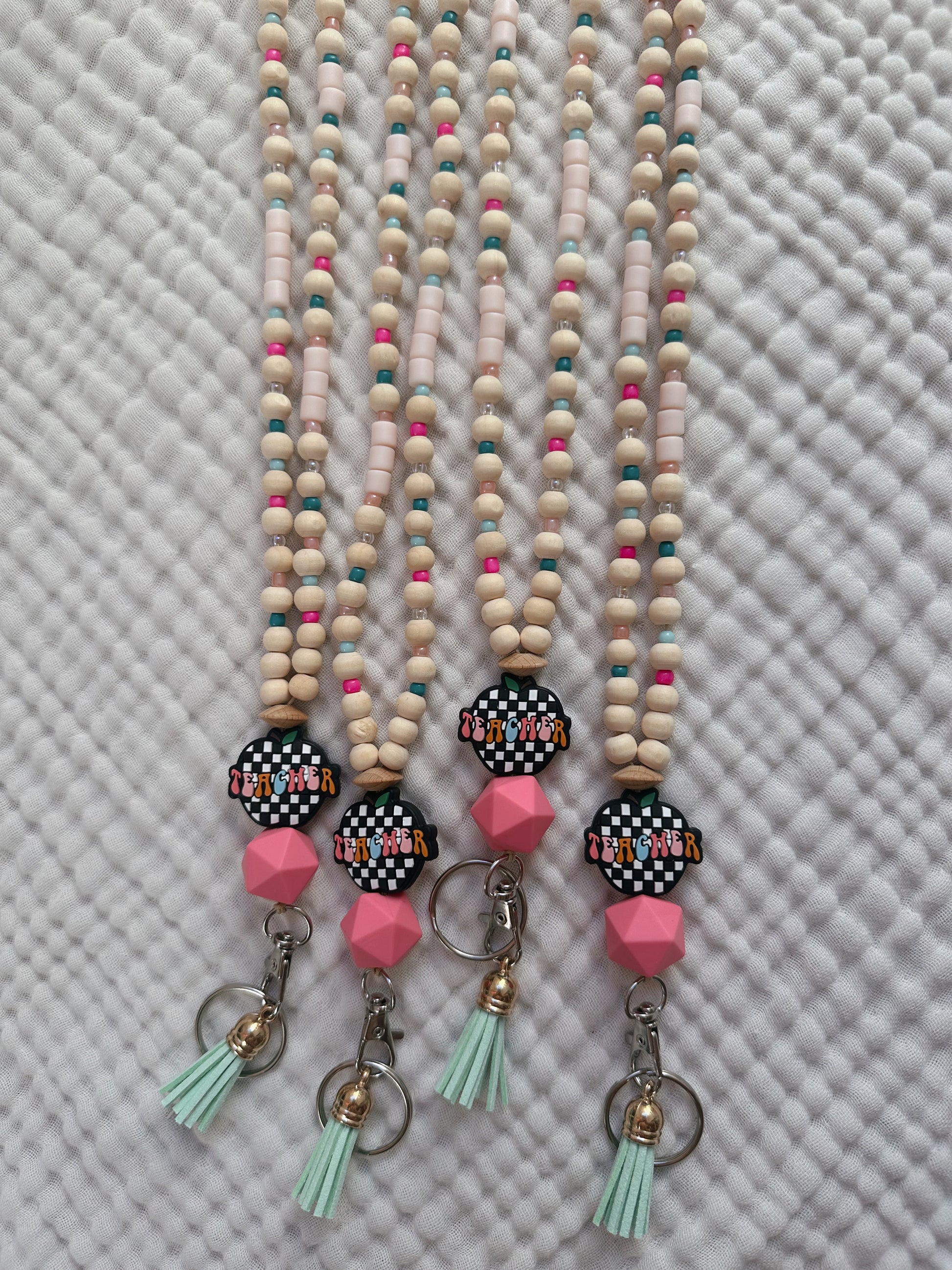 All accessory items are not meant to get wet. Wearing jewelry in the shower, swimming pool, ocean, etc. is not recommended as this can cause premature wear to beads and cording. Lanyards will now be setup with cording attached to lobster clasp instead of key ring. This will help your keys & badges go on more smoothly!