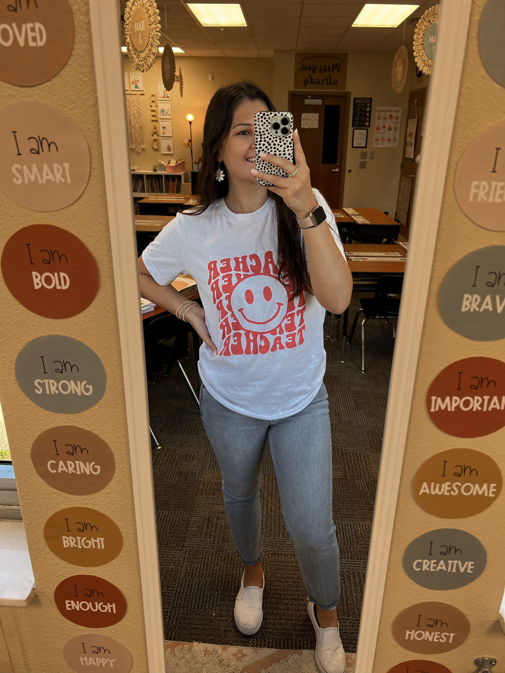 This ~Wavy~ teacher tee is screen printed on a white Bella canvas tee. It is so soft and the perfect tee to pair with a fun shirt or pair of jeans.
